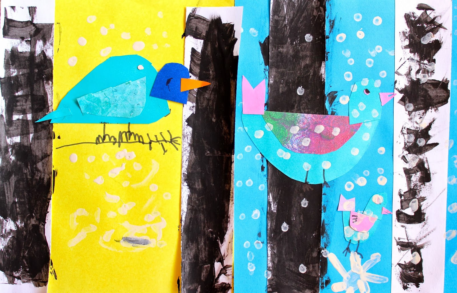 2nd grade uses up every last minute of art class to finish these fabulous mixed-media bird collages!